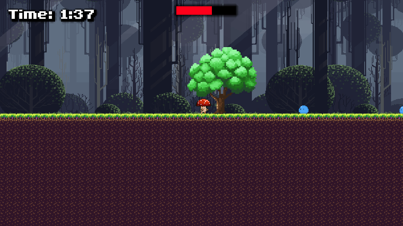 In Tree Keeper, you play as a small mushroom guardian protecting a magical tree from incoming slime creatures.